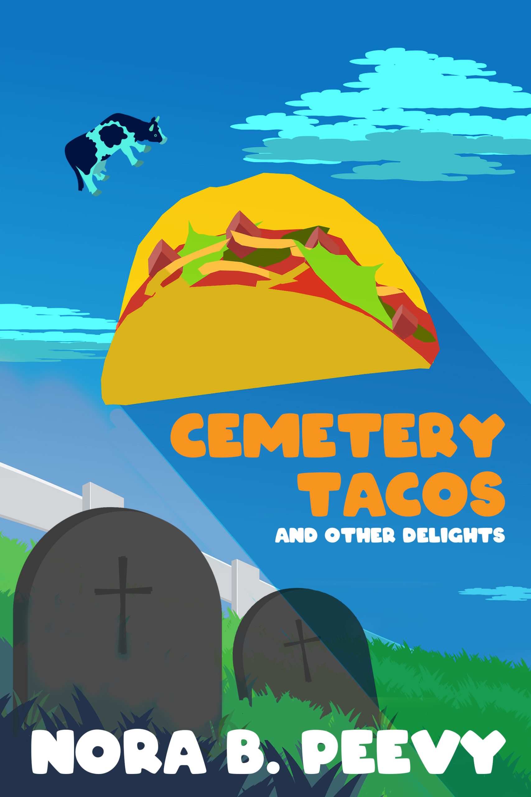 In Cemetery Tacos and Other Delights there are themes of love, loss, grief, and injustice avenged. Nora B. Peevy introduces you to Moth Girl in “Cemetery Tacos on Wednesday,” while in “Bury Him by the River” a group of college students murder an innocent man and must cover up their crime..and face the consequences. Bad children are punished with witchcraft in “The Telling Place,” and in “A Taste of Murder,” a young female highjacker takes a ride from a serial killer. Finally, in “Carnivorous Cows from Outer Space,” alien cows plot to eat the human race and claim Planet Earth for themselves.